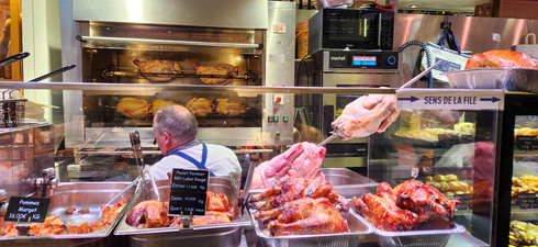During our visit, the market hall was lively, with a few people shopping for their groceries, but most here were socializing at the seafood counter and the Charcuterie vendor for wine and a snack.