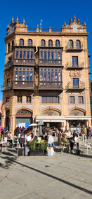 The Tapas Bars and restaurants spill into the ancient streets, providing the fuel necessary for the revelers. The streets are crowded but manageable, littered with confetti and streamers showered on the performers. A non-stop celebration from noon to late in the evening with music and performances on stage at most of the plazas.