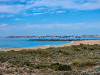 Taking advantage of a little cooler weather in the morning, a walk along the boardwalk of Alvor. The path consists of mostly raised wooden pathways built to protect the marsh grasses and wildlife but transitions to a sandy pathway that runs to the mouth of the river. Sandwiched between Alvor beach and the Atlantic on one side and the river/estuary and the marina and village on the other providing endless views along the strands of sandy beach with the town of Lagos in the distance and the marsh and grasses leading up to the Marina and village of Alvor
