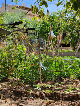 Teresa´s Garden continues to expand and produce. This month harvesting the last of the lettuce, the onions, shallots, carrots, radish, fava beans, Peas, loquats, herbs, oranges, mandarins, and lemons are ripe and ready for consumption. The citrus trees flowers have given way to small new fruits even though the last crop is yet to finish! Almost ready are the green beans, spinach, and potatoes and recent additions of tomatoes, bell peppers, and zucchini are growing quickly. Teresa loves her garden and is out caring for it just about daily. We chip in a little where we can with watering and weeding.