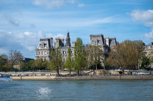 After a lengthy walk we arrived at Parc de la Villette where we boarded the boat for the 2.5 hour cruise down stream. It is a very leisurely trip as the boat navigates through nine locks but the scenery along the way is beautiful. We eventually transition into the tunnel portion which is under the Parkway where we walked earlier. Skylights at the top of the tunnel let in abundant natural light creating artful reflections as the sun bounces off the water and onto the brick walls. As we exit the tunnel and pass through the final lock we enter the Siene river passing some of the city's famous monuments. Notre Dame can be seen covered in massive scaffolding as restoration continues from the devastating fire in 2019. The city is hard at work to finish projects like this prior to the Summer Olympics in 2024.
