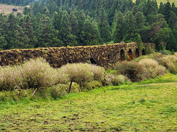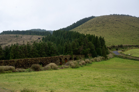 The drive uphill to Lagoa do Canário was spectacular. Through vast green farmlands, dense forests of Japanese Cedar trees, roads lined with a hedge of giant Camelia bushes (although they were not in bloom yet, we hear it's an amazing sight), moss-covered rock walls, and arched aqueducts.