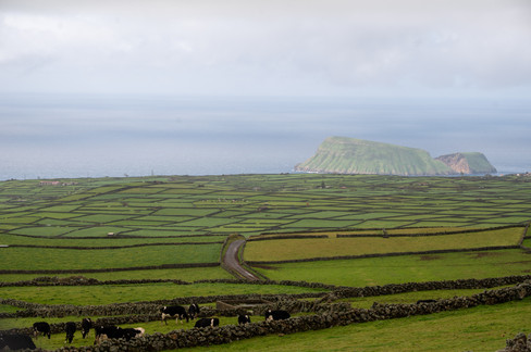 Another day exploring the island, a beautiful drive in and out of the clouds up to Miradouro da Serra do Cume. The viewpoint offers exceptional views over the "patchwork quilt" (manta de retalhos), the green fields divided by stone walls, and the island's most famous landscape. Although we didn't see much at the top due to fog, we broke through the clouds on the drive down the other side through Moinho Miradouro da Fonte de Bastardo, which provided breathtaking views of the manta de retalos scenery and plenty of cows to keep us company