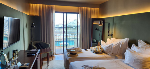 We stayed at the Grand Azores hotel, located on the waterfront adjacent to the harbor and marina. There was plenty to see out our window, including the marina, cruise ships, harbor activity, and the brave souls swimming in the ocean pool, some choosing to walk there in their hotel robes to take the plunge. Cruise ships dock at the pier directly in front of the hotel, so that wasn't so pretty. The busy cargo terminal to our right was always active with onloading and offloading shipping containers, and the marina was busy with tourist boats and the arrival and departure of the occasional large yacht. The hotel and service were nice, and the rooms were spacious and well-maintained.