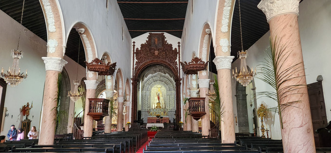 We spent the day wandering through the city, starting at the Staircases and City Gates, where you'll find a statue of Vasco da Gama and the striking blue-and-white Igreja da Misericórdia, walking along Rua Direita, lined with historic houses, and reaching Praça Velha, a picturesque square surrounded by beautiful historic buildings. A few blocks away, visit the Cathedral of Angra do Heroísmo, and right behind it, you'll find Bettencourt Palace. A little further along is the coral and white Sé Catedral (Church of the Holy Savior. There are plenty of sites to see, walking the relatively small city, including many religious sites and island architecture.